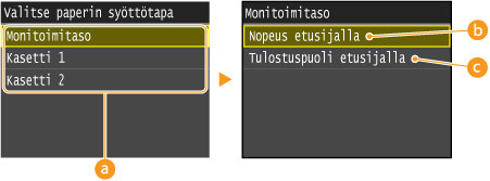 ). Automaattinen paperikasetinvalinta on aina käytössä, kun tulostetaan monitoimitasolta syötetylle paperille.