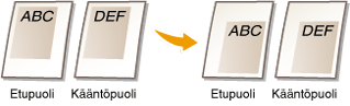 Käytettävissä olevat asetuksetKaikki tässä osassa kuvatut tulostusasetukset, paitsi <Paperikoon ohitus> (Paperikoon ohitus), ovat käytettävissä vain PCL-tulostuksessa. Näitä asetuksia ei tarvitse määrittää, jos esimerkiksi tulostat käyttäen UFR II -tulostinajuria.
