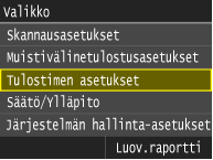 Asetukset, joissa on merkintä "*2", ovat käytettävissä vain, kun lisävarusteena saatava Print Kit on rekisteröity.