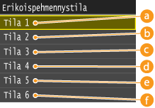Kun <Sekoitussävytys> on käytössä kohdassa <Puolisävyt> (Puolisävyt), <Tila 1>, <Tila 2>, <Tila 3> ja <Tila 4> tuottavat tulosteisiin saman tuloksen kuin <Tila 6>.