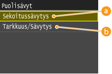 Jos <Väritila>-asetuksena on <Automaattinen (Väri/MV)> tai <Väri>, tätä asetusta ei käytetä.