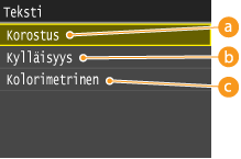 Tätä asetusta käytetään vain, ja se vaikuttaa vain, puhtaaseen mustaan, jos 'Puhdas musta teksti' -asetuksena on <Kyllä>.