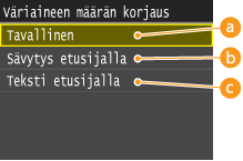 Asetuksia <Oletuspaperin koko> ja <Oletuspaperin tyyppi> ei voi määrittää erikseen. Määritä paperin koko <Oletuspaperin koko> -näytössä ja määritä sitten paperin tyyppi <Oletuspaperin tyyppi> -näytössä.