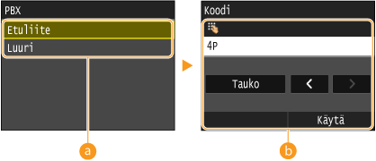 Valitse käytettävän tilaajavaihteen (PBX) tyyppi. Jos napautat kohtaa <Etuliite>, tallenna etuliite seuraavassa näytössä.