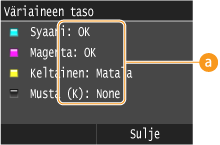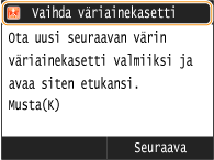 Vaihdettavan väriaineen väri näytetään näytössä. Jos vaihdettavia kasetteja on useita, vaihda värikasetit seuraavassa järjestyksessä: musta, keltainen, magenta, syaani.