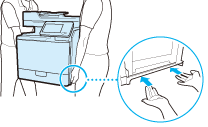 Pidä kiinni nostokahvoista ja nosta laitetta. Kun lisävarusteena saatava paperikasetti on asennettu, jätä lisäpaperikasetti lattialle ja siirrä se, kun olet ensin siirtänyt pääyksikön.