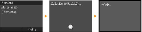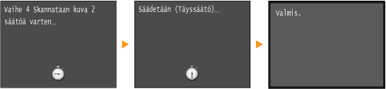 Tämä säätö säilyttää optimointitilan, joka saatiin suorittamalla <Täyssäätö>. Huomaa, että et voi suorittaa tätä säätöä, kun teet jotain muita toimintoja, esimerkiksi skannaat tai tulostat. Jos tämän säädön tulos ei ole tyydyttävä, suorita <Täyssäätö>. Tämä säätö saatetaan suorittaa automaattisesti, kun vaihdat väriainekasetin.