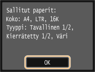 Tarkista, että laitteeseen on lisätty näytössä näkyvää paperikokoa ja -tyyppiä, ja napauta kohtaa <OK>.