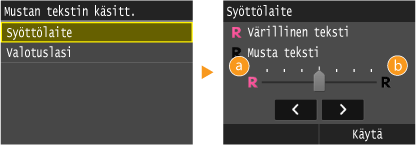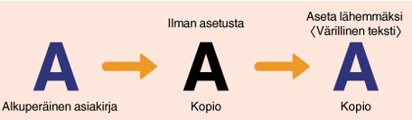 Asetuksia käytetään värikopioihin, kun <Alkuperäisen tyyppi> -asetuksena on <Teksti/Valokuva/Kartta> tai <Teksti> (Asiakirjan tyypin valitseminen).