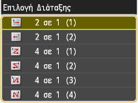 Επιλέξτε <2 σε 1> για να αντιγράψετε δύο σελίδες σε ένα φύλλο ή επιλέξτε <4 σε 1> για να αντιγράψετε τέσσερις σελίδες σε ένα φύλλο.
