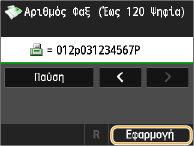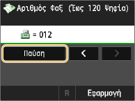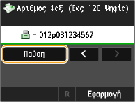 Πατήστε <Παύση> για να εισαγάγετε μια παύση στο τέλος του αριθμού φαξ, όταν είναι απαραίτητο.