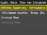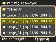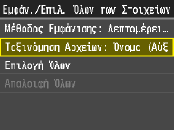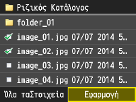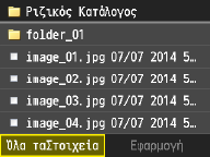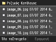 Όταν πατήσετε <Ημ/νία/Ώρα (Αύξουσα)> ή <Ημ/νία/Ώρα (Φθίνουσα)>, τα αρχεία ταξινομούνται με βάση τις ημερομηνίες και την ώρα τροποποίησης των αρχείων.