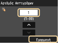Καθορίστε τον αριθμό των αντιγράφων από το 1 έως το 99. Χρησιμοποιήστε τα πλήκτρα