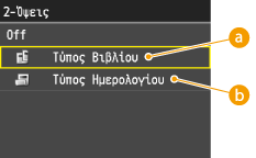 Η επιλογή <2-Όψεις> ενδέχεται να μην είναι διαθέσιμη για ορισμένα μεγέθη ή τύπους χαρτιού.