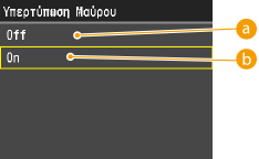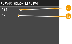 Όταν η επιλογή <On> έχει οριστεί για τη ρύθμιση <Αμιγώς Μαύρο Κείμενο>