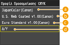 Εάν επιλεγεί μια ρύθμιση εκτός από <Δ/Υ> για το <Προφίλ Προσομοίωσης CMYK>, δεν εφαρμόζεται επιτύπωση.
