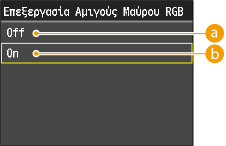 Εάν η επιλογή <Δ/Υ> έχει οριστεί για τη ρύθμιση <Προφίλ Πηγής RGB>, η ρύθμιση Επεξεργασία Αμιγούς Μαύρου RGB δεν εφαρμόζεται.