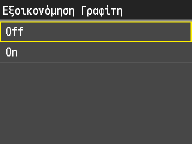 Η ρύθμιση αυτή σας δίνει τη δυνατότητα να ρυθμίσετε τη λειτουργία εξοικονόμησης γραφίτη. Η λειτουργία εξοικονόμησης γραφίτη χρησιμοποιεί λιγότερο γραφίτη για την εκτύπωση των εγγράφων και μπορεί να οδηγήσει σε μεγαλύτερη διάρκεια ζωής για το γραφίτη.