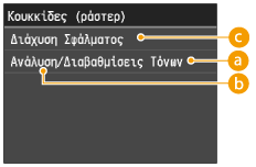 Αν η επιλογή <Κατάσταση Χρώματος> έχει οριστεί στη ρύθμιση <Χρώμα>, αυτή η ρύθμιση δεν ισχύει.