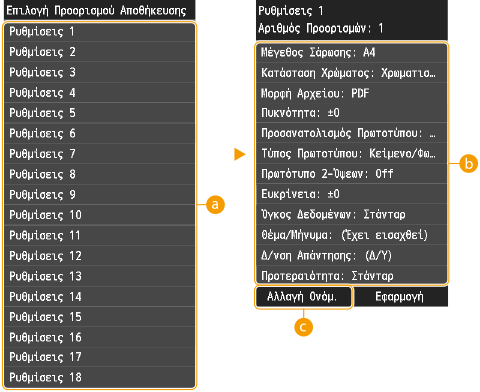 <Ρυθμίσεις 1> έως <Ρυθμίσεις 18>
