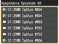 Όταν η ρύθμιση <Εμφάνιση Ημερολογίου Εργασιών> έχει οριστεί σε <Off>, δεν μπορείτε να ελέγξετε τα ημερολόγια εργασιών για τα απεσταλμένα έγγραφα.