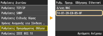 Η σύνδεση του μηχανήματος σε διανομέα μεταγωγής ή γέφυρα μπορεί να προκαλέσει αποτυχία σύνδεσης, ακόμα και εάν η διεύθυνση ΙΡ έχει διαμορφωθεί σωστά. Αυτό το πρόβλημα μπορεί να επιλυθεί ορίζοντας ένα συγκεκριμένο διάστημα προτού το μηχάνημα αρχίσει να επικοινωνεί. Ορισμός χρόνου αναμονής για τη σύνδεση σε δίκτυο