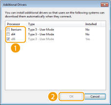 ![]() Επιλέξτε επιπρόσθετα προγράμματα οδήγησης από τα ακόλουθα, σύμφωνα με το λειτουργικό σύστημα του διακομιστή εκτύπωσης.