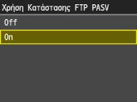 Πατήστε <Ρυθμίσεις TCP/IP> <Χρήση Κατάστασης FTP PASV>.