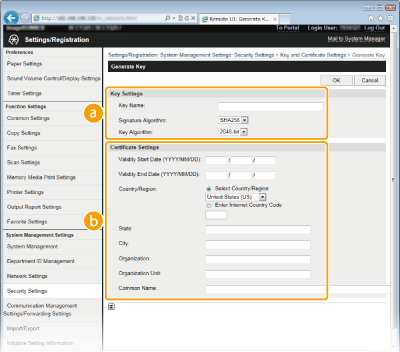 [Key and Certificate Settings].