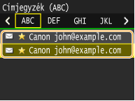 Érintsen meg egy fület, ha az első karakter alapján szeretne keresni, vagy írja be a megjeleníteni kívánt rendeltetési hely nevét.