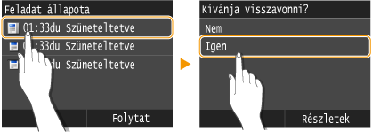A dokumentumok beolvasásra kerültek és nyomtatásra várnak. Érintse meg a megszakítandó másolt dokumentumot.
