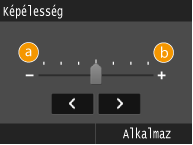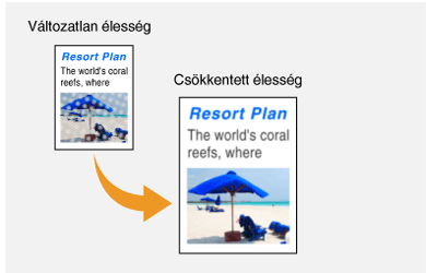 Ezzel a funkcióval élesebbé teheti az elmosódott szövegeket, és kedvezőbben jelenítheti meg a fényképeket. Elmosódott szöveg és vonalak élesítése céljából növelhető, az újságfényképek megjelenésének javítása érdekében pedig csökkenthető az élesség.