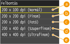 Kiválaszthatja a dokumentum típusának megfelelő felbontást. Minél nagyobb a felbontás, annál tisztább lesz a kép, de annál tovább is tart elküldeni.