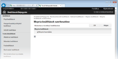 Jelentkezzen be a Távoli felhasználói felületen ( A Távoli felhasználói felület indítása)  [Beállítások/Bejegyzés]  [Hálózati beállítások]  [Mopria-beállítások]  [Szerkesztés]  módosítsa a beállításokat  [OK]