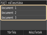 Ha a memóriában több felhasználónak vannak védett dokumentumai, akkor a <Felhasználó kiválasztása> képernyő megjelenik a <Fájl választása> képernyő előtt. Érintse meg a felhasználónevét.