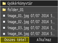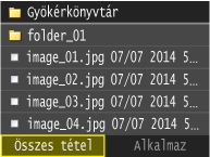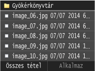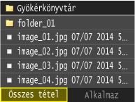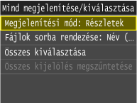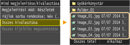Ha a <Összes tétel> gomb megérintése előtt választ ki egy fájlt, akkor csak vele megegyező formátumú fájlokat jelölhet ki.