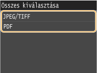 Érintse meg a <JPEG/TIFF> vagy a <PDF> gombot.