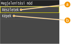 A <Részletek> megjelenítési módot (amely fájlneveket és módosítási dátumokat jelenít meg) módosíthatja a <Képek> megjelenítési módra (amely nyomtatási képeket jelenít meg). A képek nyomtatási képének megjelenítésével ellenőrizheti a nyomtatásra kijelölendő fájlok tartalmát.
