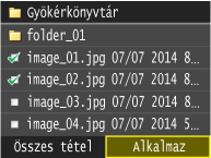 Egy fájl kiválasztásához érintse meg a nyomtatási képet, vagy jelölje be a fájlnév bal oldalán látható jelölőnégyzetet (  ).