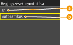 Elsimítja nyomtatásnál a féltónusos hátterű karaktereket és sötét vonalakat. A <Mód 3> lehetőséget válassza, ha a <Mód 1> beállítás mellett elcsúsztatva nyomtatódnak ki a nagy méretű karakterek és a sötét színű vastag vonalak belsejében lévő féltónusok, vagy ha a világos karakterek és vonalak élei egyenetlenek.