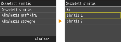 Az <Alkalmazás grafikára> és az <Alkalmazás szövegre> lehetőség csak akkor választható ki, ha a <Simítás 1> vagy a <Simítás 2> ki van választva az Összetett simítás beállításnál.