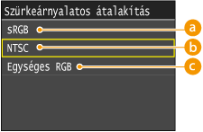 Ha a <Semmi> lehetőség van kiválasztva az <RGB forrásprofil> beállításnál, a készülék nem alkalmazza az RGB tiszta fekete folyamat beállítást.
