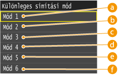 Ezzel a beállítással megadható a különleges simítás módja. A különleges simítás funkció kijavítja a függőleges színeltolódásokat, ezáltal sima karakterek, vonalak, diagramok, képek (fényképek) és sötét színátmenetek nyomtathatók.