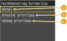 Ha a <Színesség mód> beállításnál a <Színes> érték van megadva, akkor ez a beállítás érvénytelen.