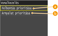 A beállítással megadható a vonalak feldolgozási módja. A legtöbb esetben javasolt a <Felbontás prioritása> beállítás használata.