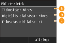 <PDF részleteinek beállítása> vagy <PDF/TIFF részleteinek beáll.>