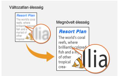 Elküldés előtt beállíthatja a kép élességét. Elmosódott szöveg és vonalak élesítése céljából növelhető, az újságfényképek megjelenésének javítása érdekében pedig csökkenthető az élesség.