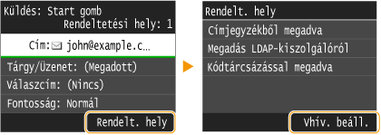 Választhat címet a legutóbb használt három rendeltetési hely közül is. Ha korábban használt rendeltetési helyet ad meg, akkor a készülék automatikusan beállítja az adott rendeltetési hely előző használata során megadott beolvasási beállításokat, például a fedettséget.