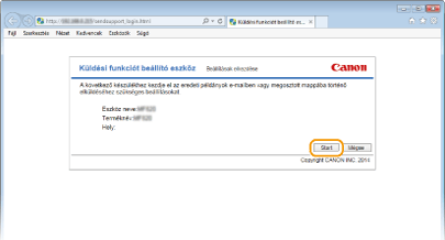 Írja be a „http://(a készülék IP-címe)/sendsupport_login.html” címet a webböngésző címsorába, és nyomja le az [ENTER] billentyűt.