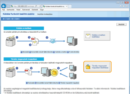 A megosztott mappa helyét a Távoli felhasználói felület segítségével is megadhatja úgy, hogy bejegyzi a mappát a címjegyzékbe. A Küldés-Funkció Beállító Eszköz azoknak a felhasználóknak jelent segítséget, akik minél egyszerűbben szeretnék elvégezni a beállítást.